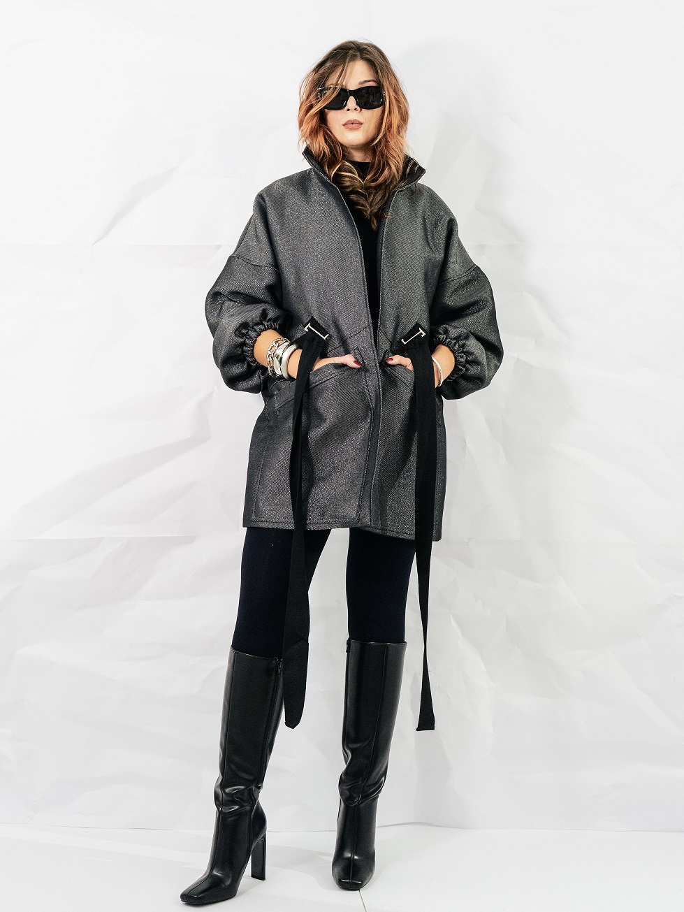 Моделот е со висина 174 cm. и носи врз себе модел бр.40 (L)
