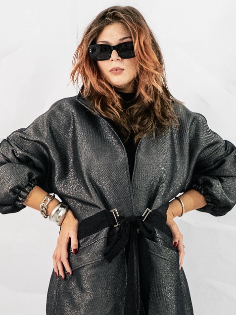 Моделот е со висина 174 cm. и носи врз себе модел бр.40 (L)