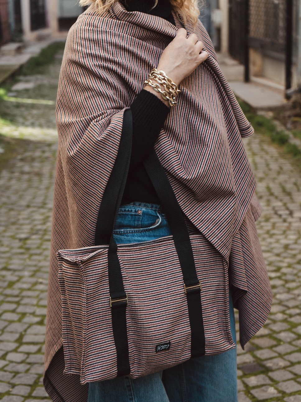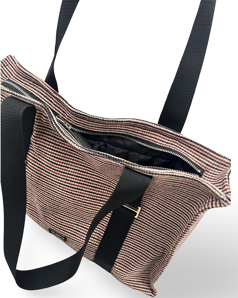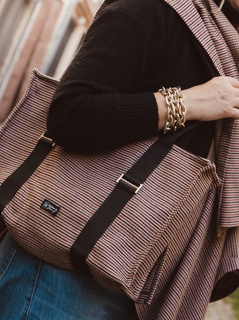Моделот е со висина 174 cm. и носи врз себе ташна една величина.